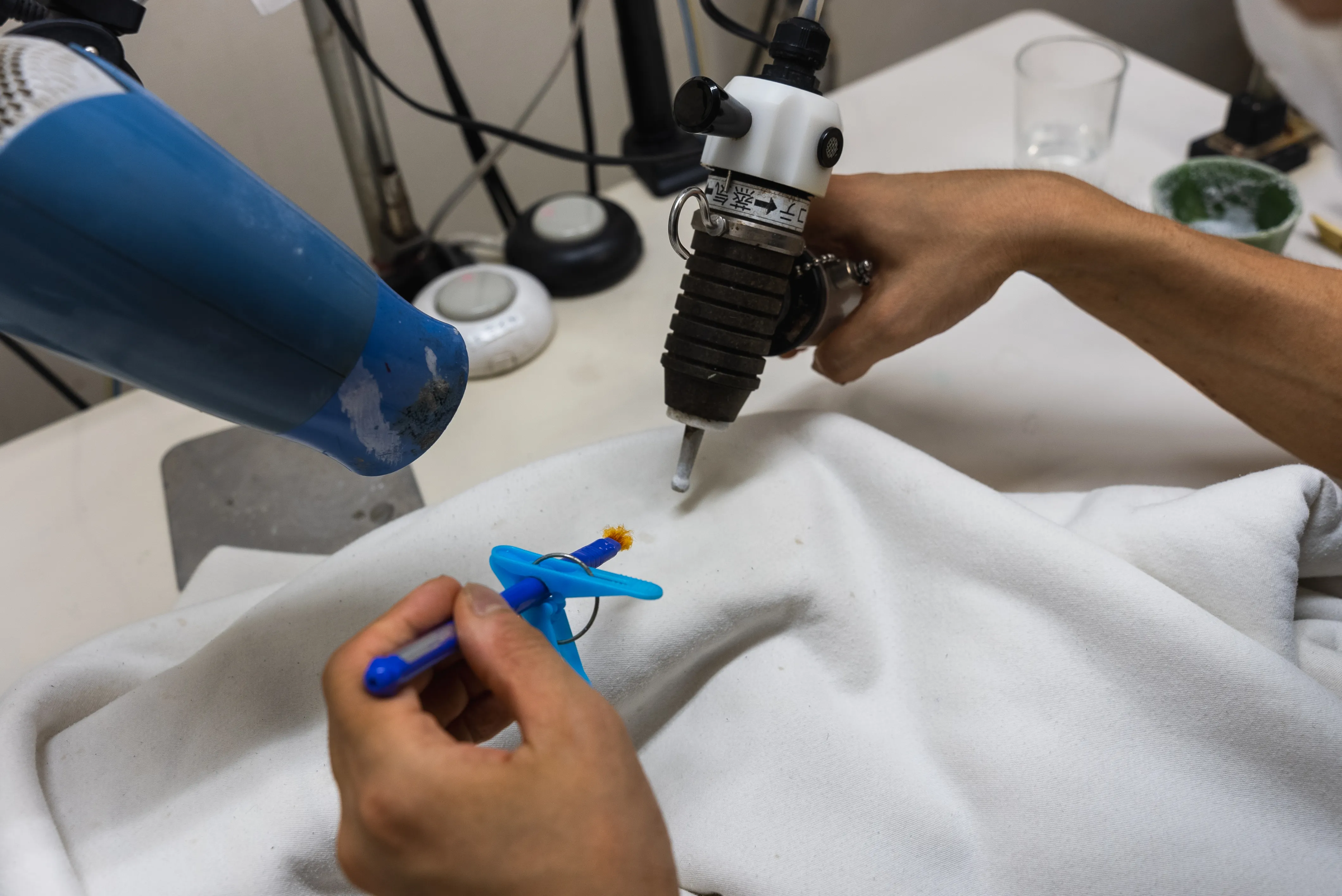 歯ブラシを使って、クレンジングオイルをシミに優しく叩き込むように染み込ませます。ゴシゴシとこすってしまうと、衣類の繊維を傷めてしまう可能性があるため注意しましょう。